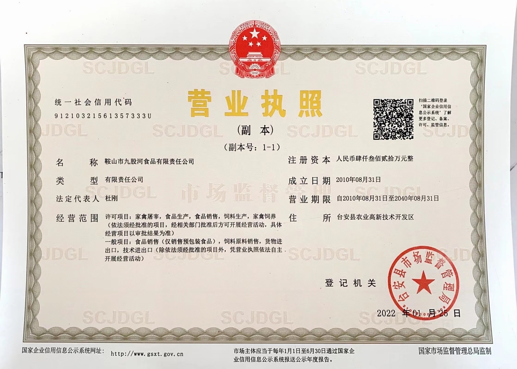 1997年丨九股河誕生于遼寧臺安,成立臺安縣九股河農(nóng)業(yè)發(fā)展有限公司2003年丨九股河走進錦州市,在凌海成立凌海九股河食品有限公司2008年丨成立凌海九股河飼料有限公司2010年丨九股河與禾豐合作后,成立鞍山市九股河食品有限責任公司,從此,禾豐九股河走進了高速發(fā)展之路2011年丨繼續(xù)在遼西闊步,成立葫蘆島九股河食品有限公司同年,臺安縣九股河農(nóng)業(yè)發(fā)展有限公司養(yǎng)殖部成立,按下規(guī)模化籠養(yǎng)小區(qū)建設的快進鍵2